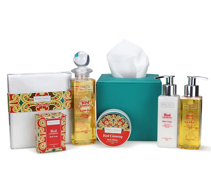 Capturing the allure of the Orient, the Red Ginseng Tissue Box holds an array of soothing bath & beauty treats that will take you to a far off land of peace and tranquillity.